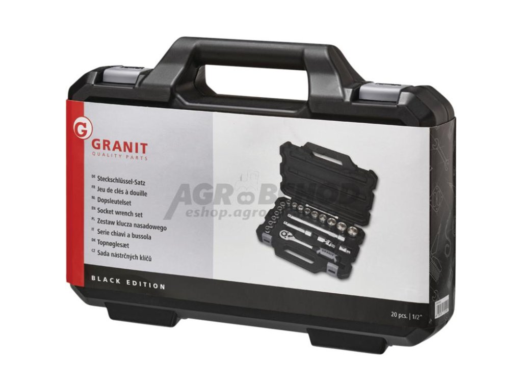 • ve vysoce kvalitním, velmi pevném kufru na nářadí GRANIT BLACK EDITION s organizačním systémem