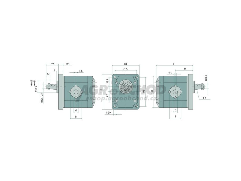 Hnací hřídel:Kužel 1:8, Ø 17,46