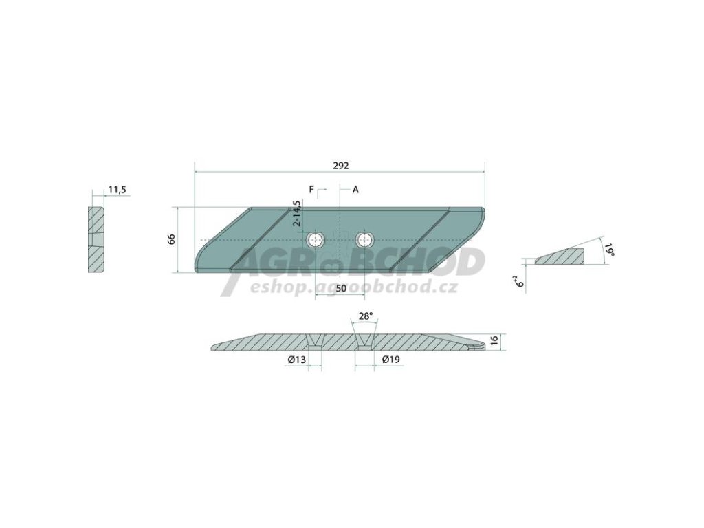 GRANIT Vyměnitelný hrot pravý 292 x 66 mm